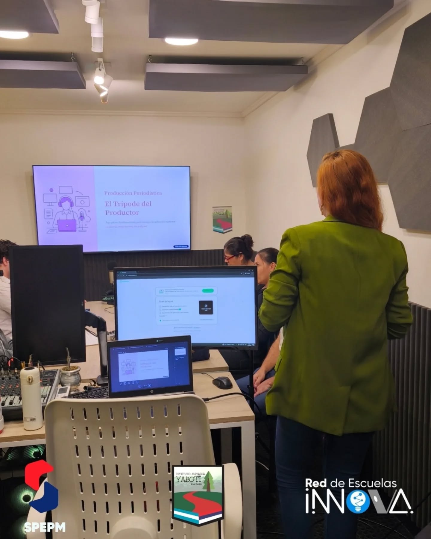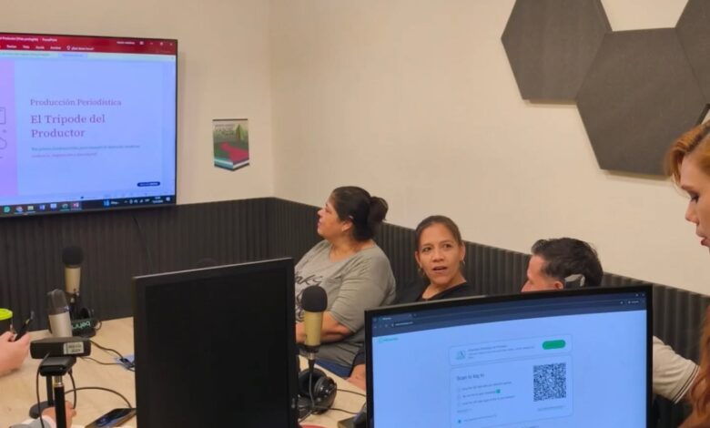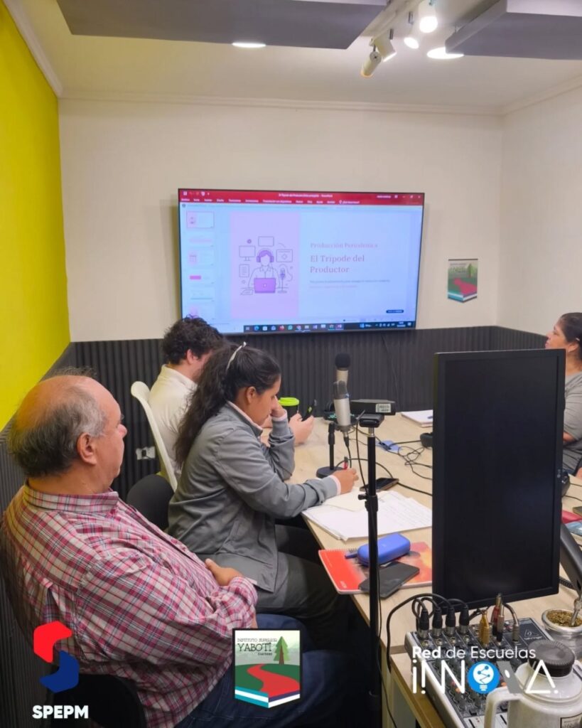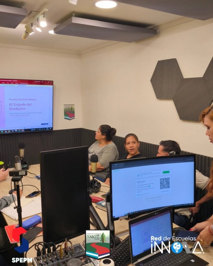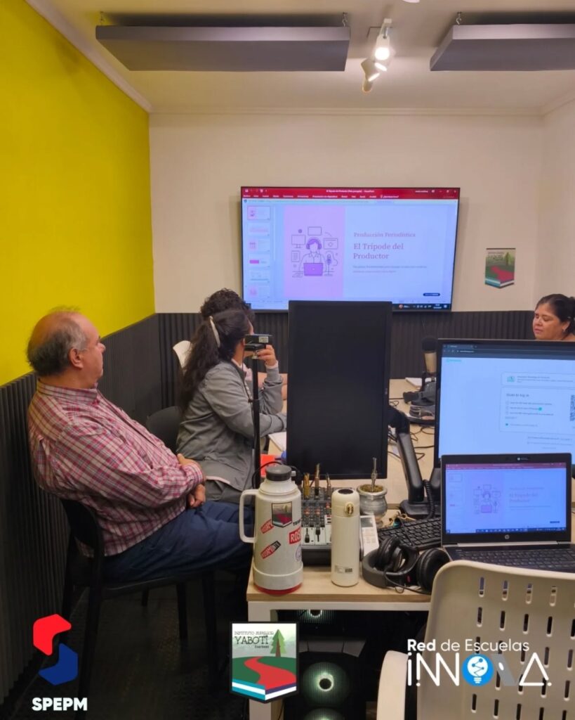 Hoy, los alumnos de 3° año de la carrera de Periodismo llevaron adelante sus clases en el estudio de radio, junto a la Lic. María Eugenia Martínez, en la materia Producción Periodística.