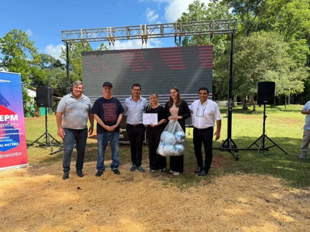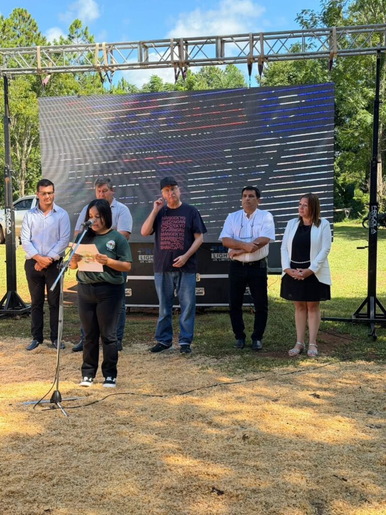 Desde Caá Yarí, acompañamos la jornada de entrega de mobiliario escolar y equipos deportivos para las EFAs, realizando la cobertura completa y entrevistas a las autoridades presentes.